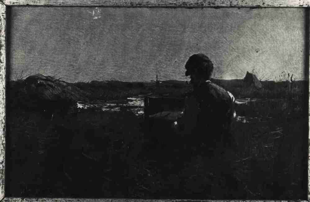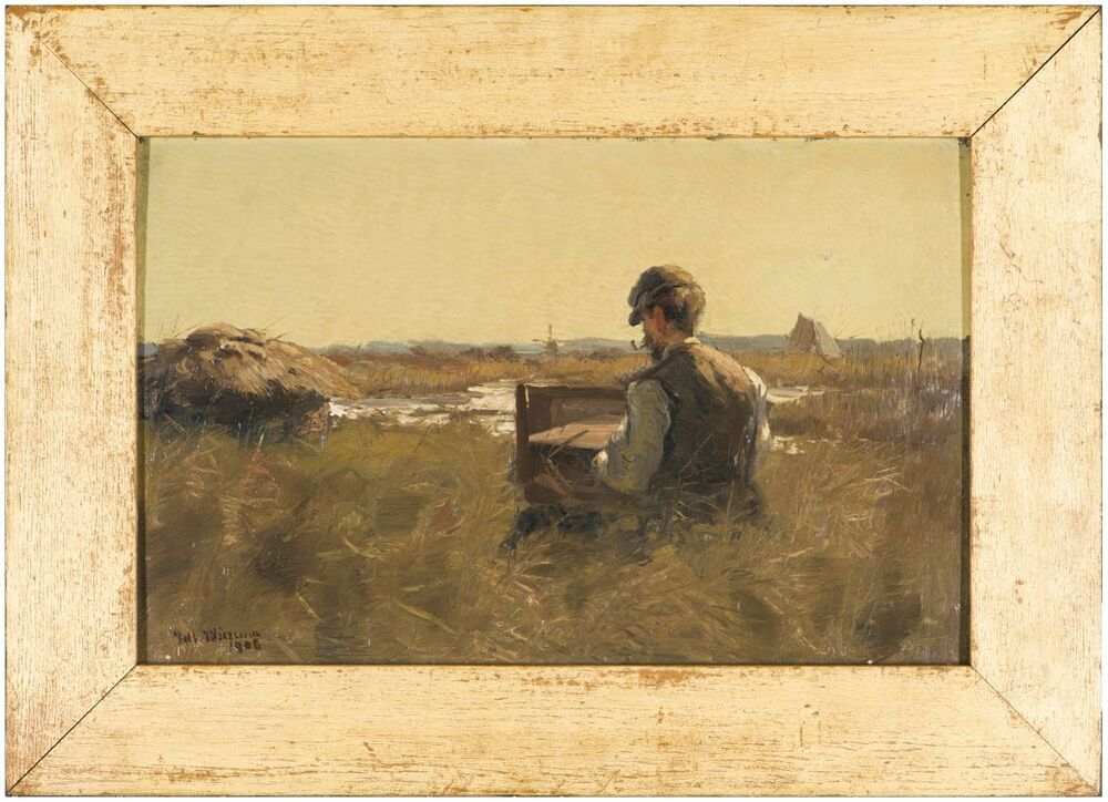 De schilder Egnatius Ydema aan het werk in de vrije natuur