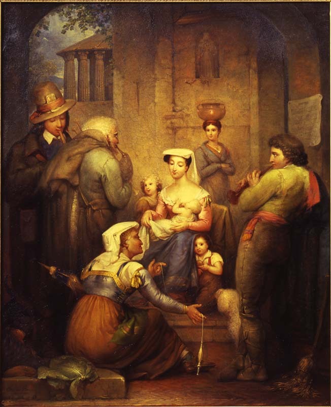 Straatscene met musicerende herders. (Kerstmis in Rome)