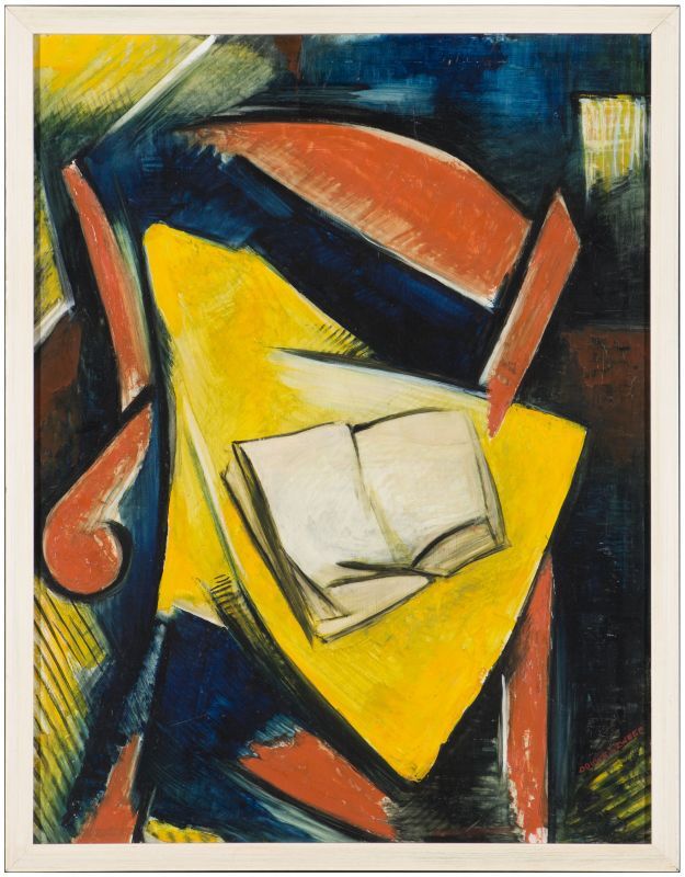 Kompositie met boek op stoel