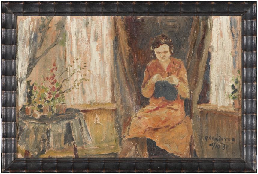Breiende vrouw in interieur