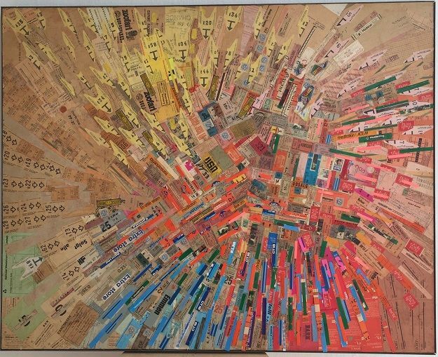 Beeldende werken die door middel van collagetechniek zijn vervaardigd, d.w.z. het maken van een tweedimensionale compositie door het opbrengen van objecten op een plat vlak. Gebruik 'fotocollages' als foto's de belangrijkste plaats innemen in de compositie. (AAT-Ned)