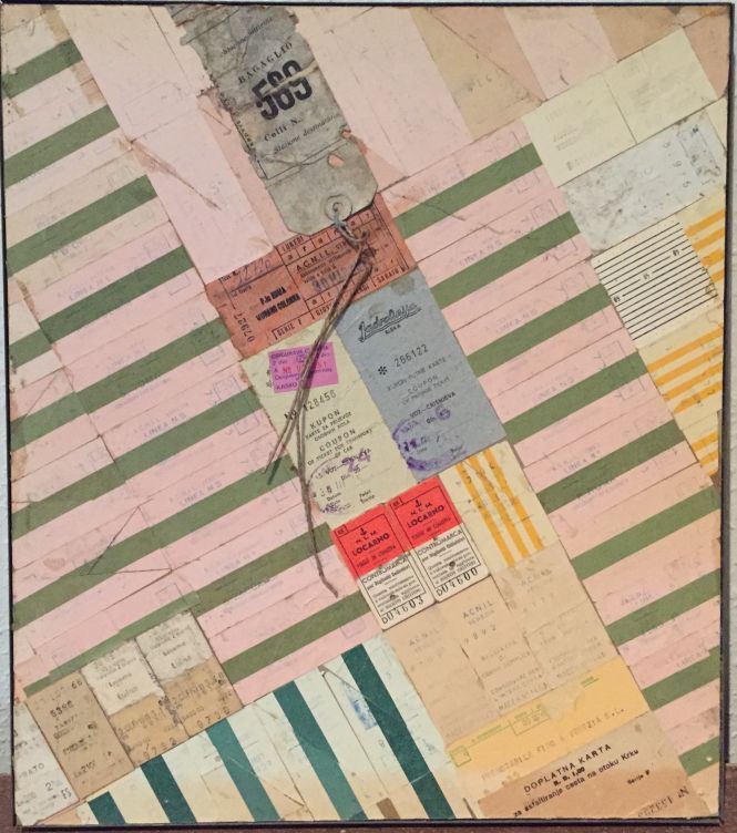 Beeldende werken die door middel van collagetechniek zijn vervaardigd, d.w.z. het maken van een tweedimensionale compositie door het opbrengen van objecten op een plat vlak. Gebruik 'fotocollages' als foto's de belangrijkste plaats innemen in de compositie. (AAT-Ned) https://data.cultureelerfgoed.nl/term/id/cht/62672d13-ba6f-42dc-b97d-63a119b2a0c3