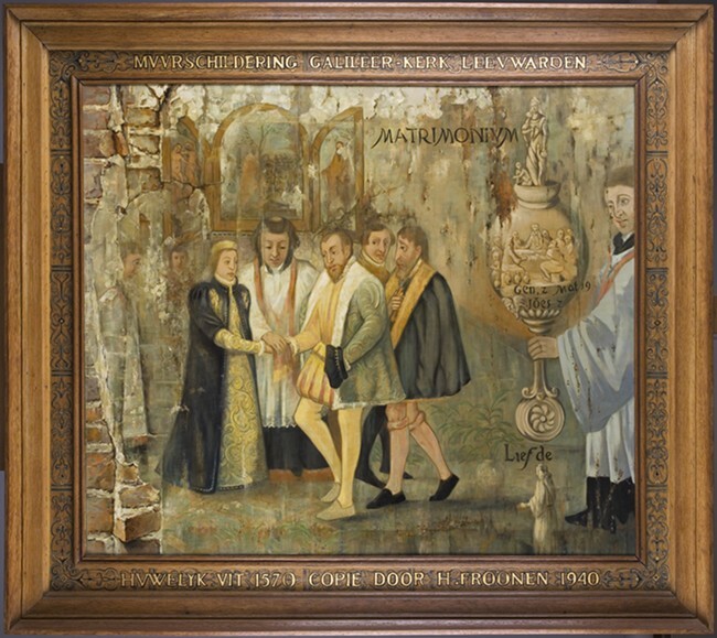 Sacrament van het huwelijk, kopie van wandschildering in de Galileërkerk in Leeuwarden