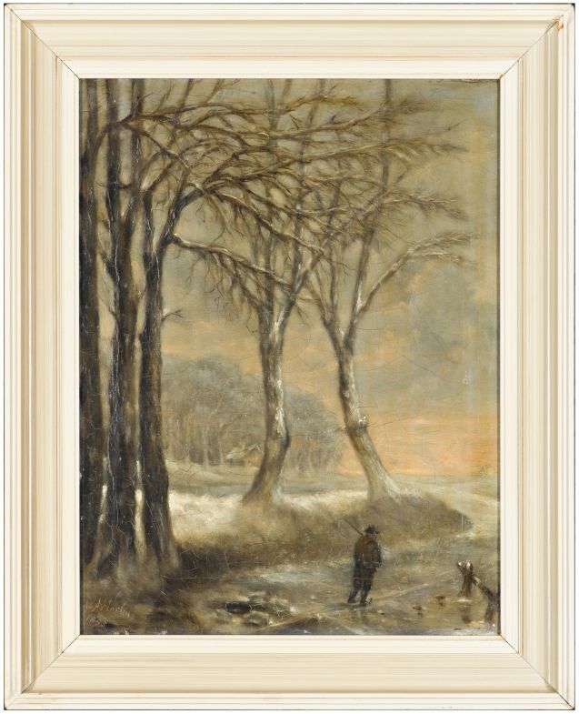 Winters landschap met wandelaar