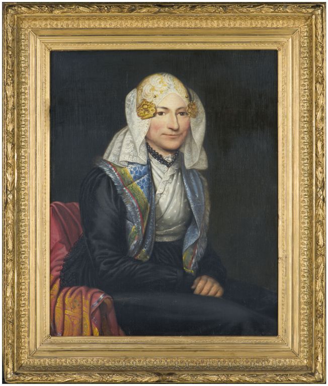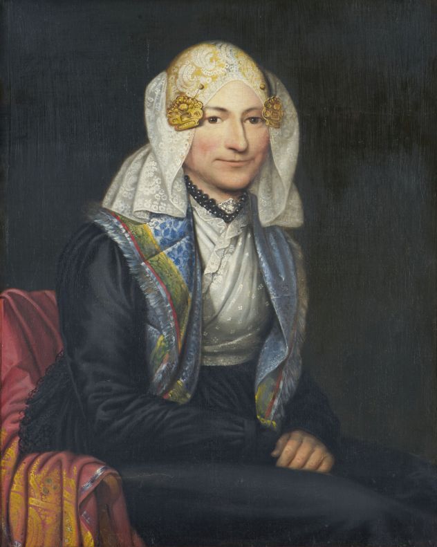Portret van Maria Uurhaan in Fries kostuum