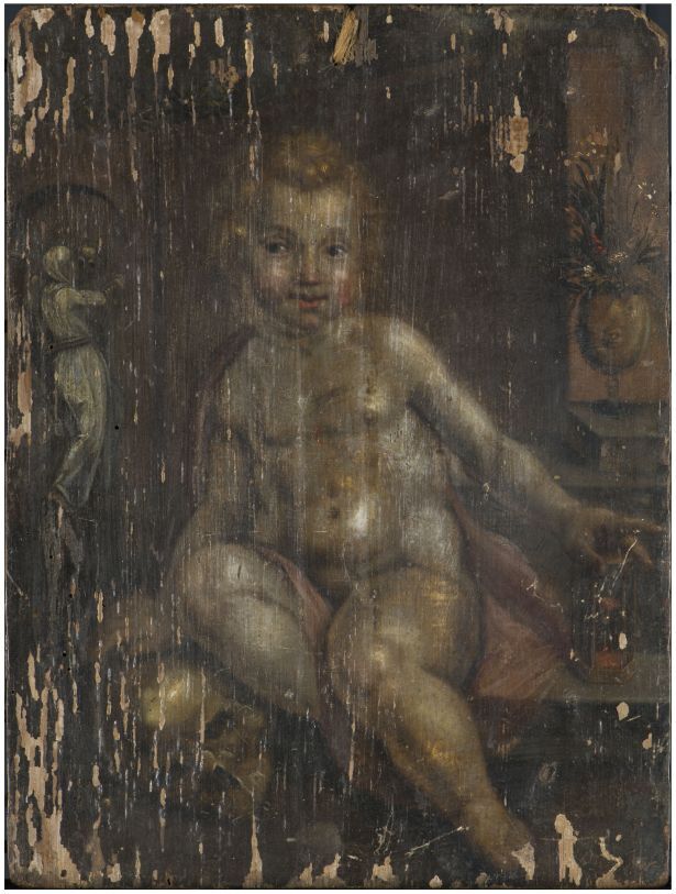 Cherubijn met zandloper en schedel