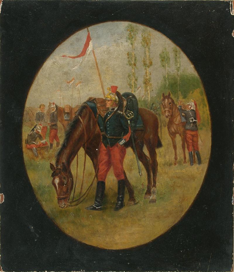 Portret J.L. van Sloterdijck met zijn paard tijdens de tiendaagse veldtocht in 1830