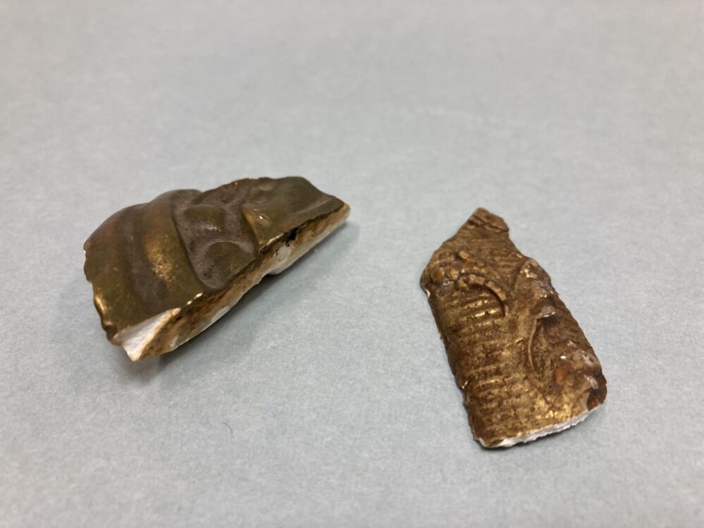 Afgebroken stuk of brokstuk van een object of van een architectuuronderdeel, zoals bijvoorbeeld een los briefpaneel, een handje van een beeld, een stuk van een staf of een kandelaar. Bewaren! Ze zijn onderdeel van de kerkelijke historie en onmisbaar bij conservering en restauratie.
