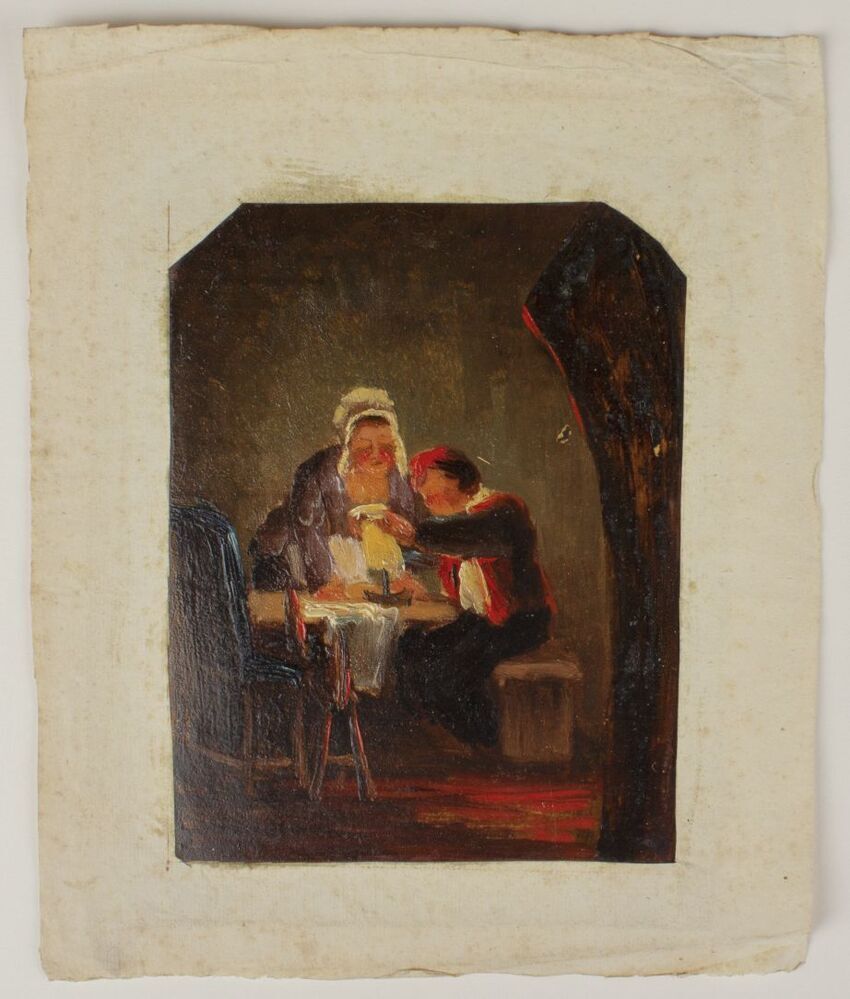 Een van 15 olieverfschetsen geschilderd door Kate en Christoffel Bisschop