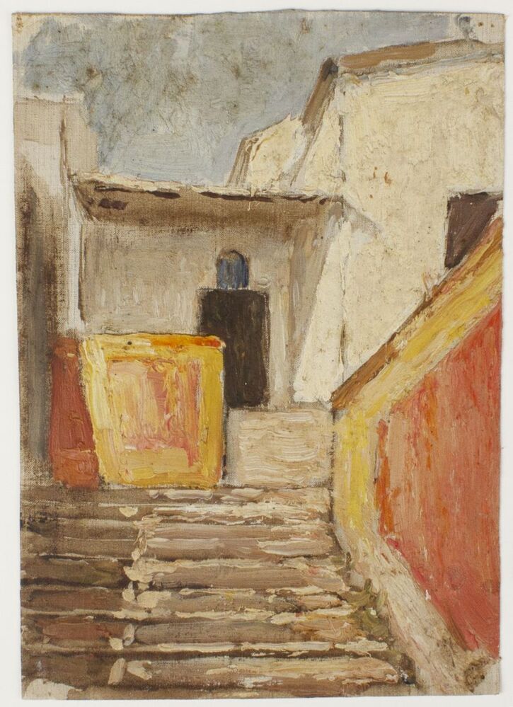 Een van 15 olieverfschetsen geschilderd door Kate en Christoffel Bisschop