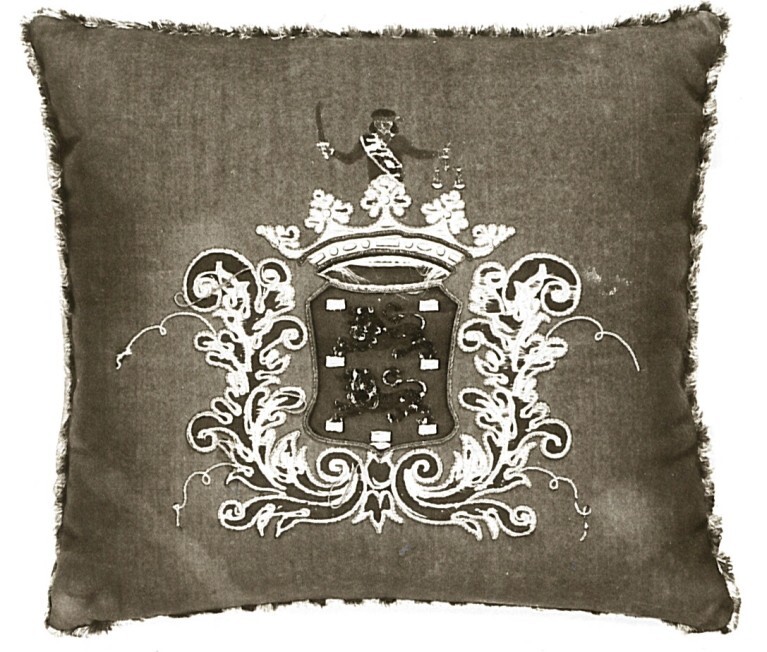 Groen kussen van lakense wol met groen-gele franje, waarop het Wapen van Friesland