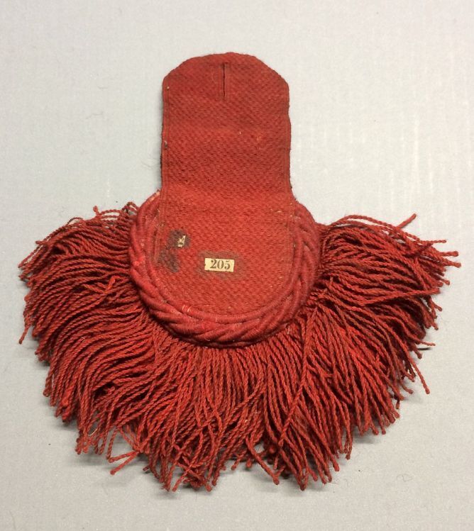 Rood wollen epaulet, afgezet met franje