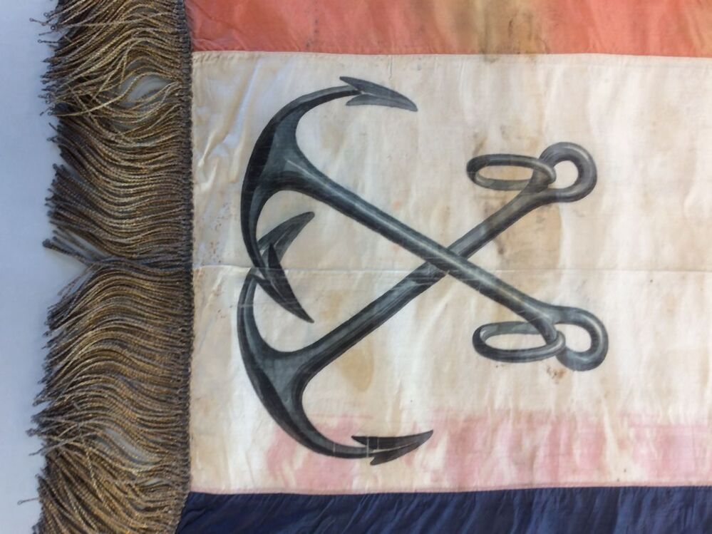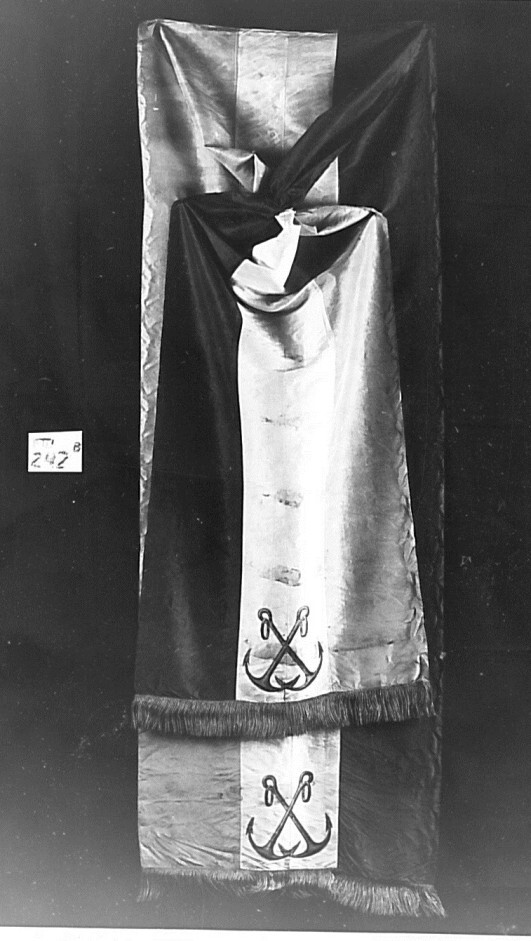 Grote zijden sjerp met gouden franje in de nationale kleuren, gedragen door de vice admiraal Sikke Sleeswijk