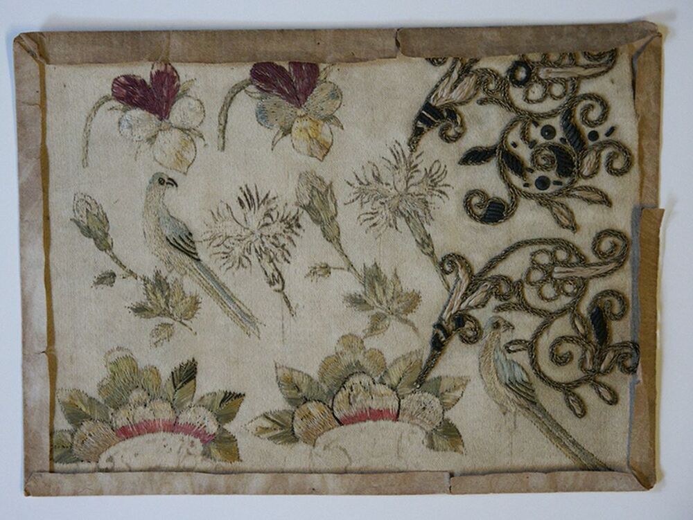 Verwijst naar werken die zich kenmerken door een patroon of ontwerp dat is uitgevoerd in met draad of fijn metaaldraad gemaakte steken. De patronen worden gewoonlijk uitgevoerd op stof, maar ook leer, papier of andere media kunnen worden gebruikt; de werken kunnen bedoeld zijn om ingelijst te worden of om kleding, bedtextiel, meubelbekleding, kussens, altaarkleden, ceremoniële voorhangen of andere zaken te versieren. (AAT)