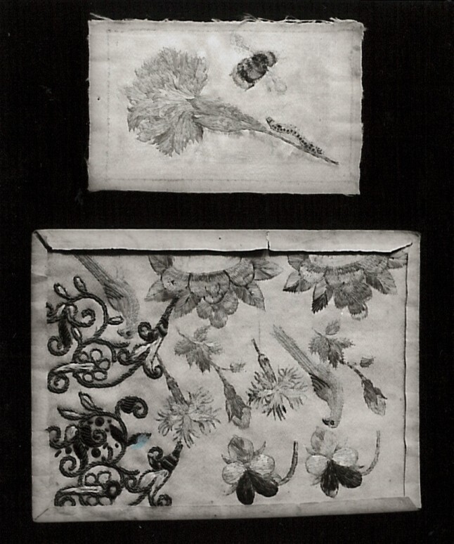 Enige bloemen op zijde, gemaakt door A.M. van Schurman (albumblaadje)