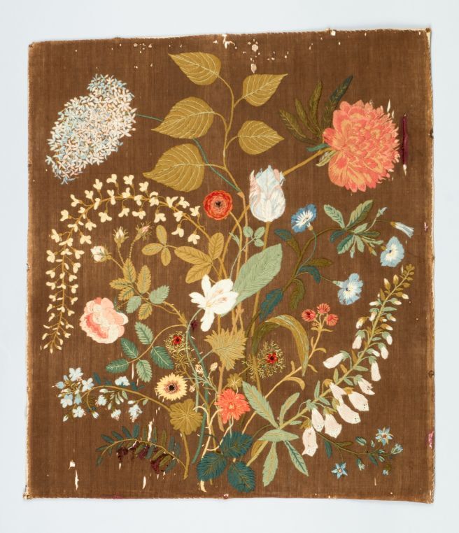 Borduursel met wol en zijde, naturalistisch bloembouquet