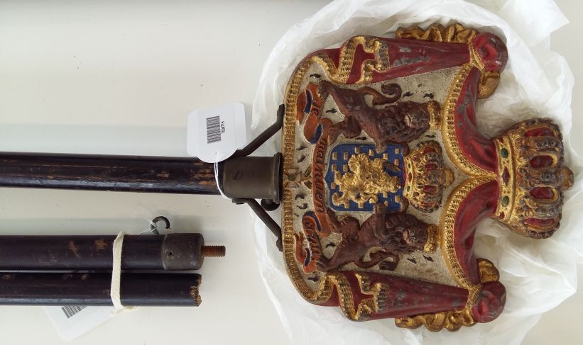 Tweedelige zwarte vaandelstok met wapen Je Maintendrai