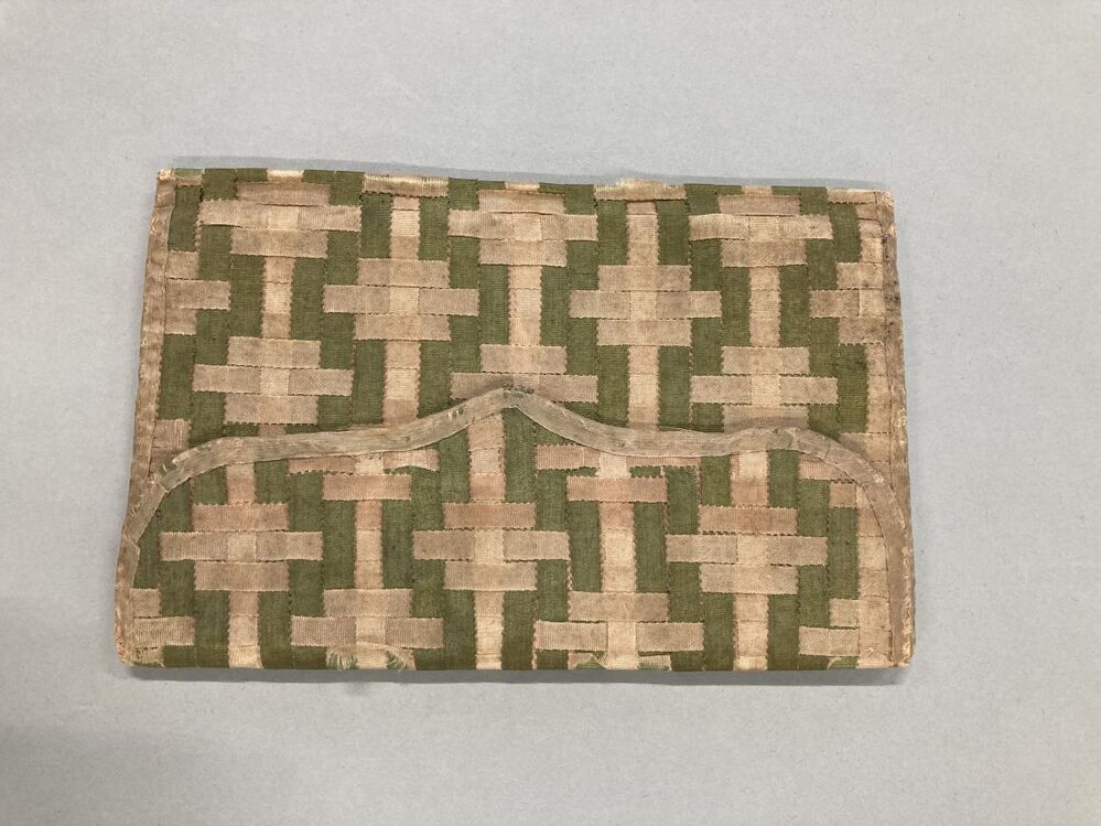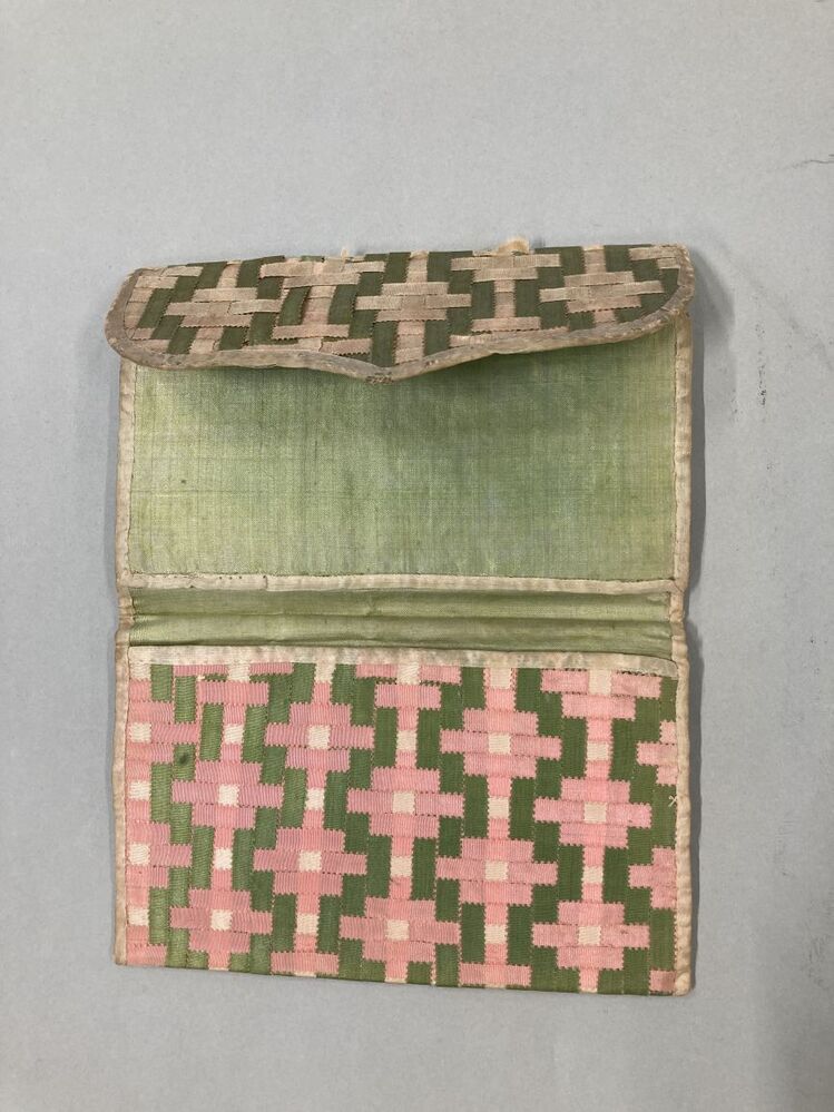 Portefeuille met roze, groen en wit zijden ribsband opgemaakt