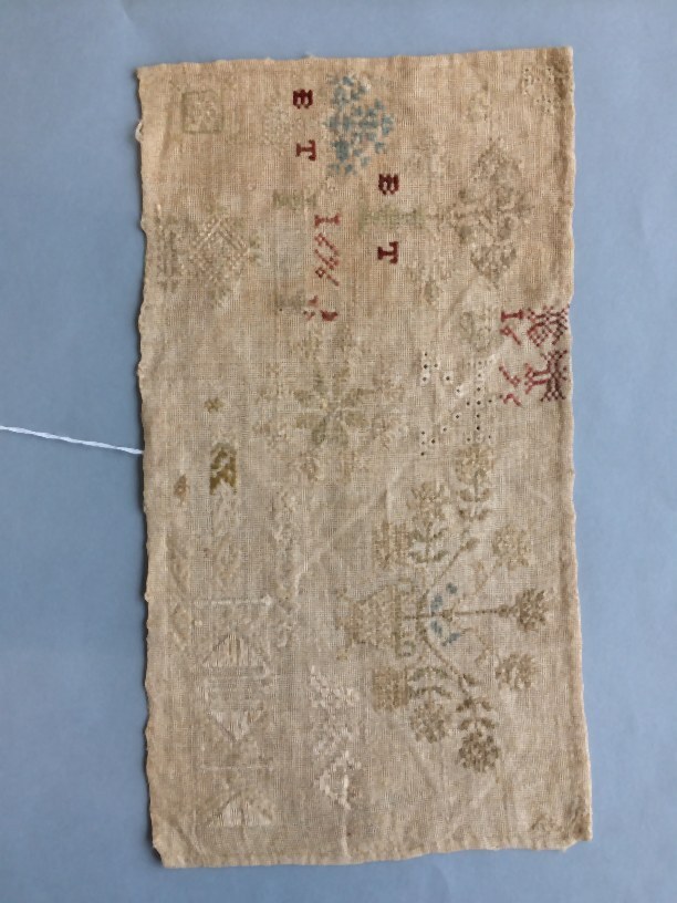 Lettermerklap, linnen en zijde geborduurd, gemerkt BT 1695