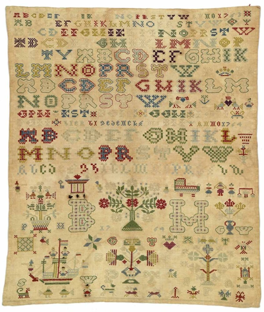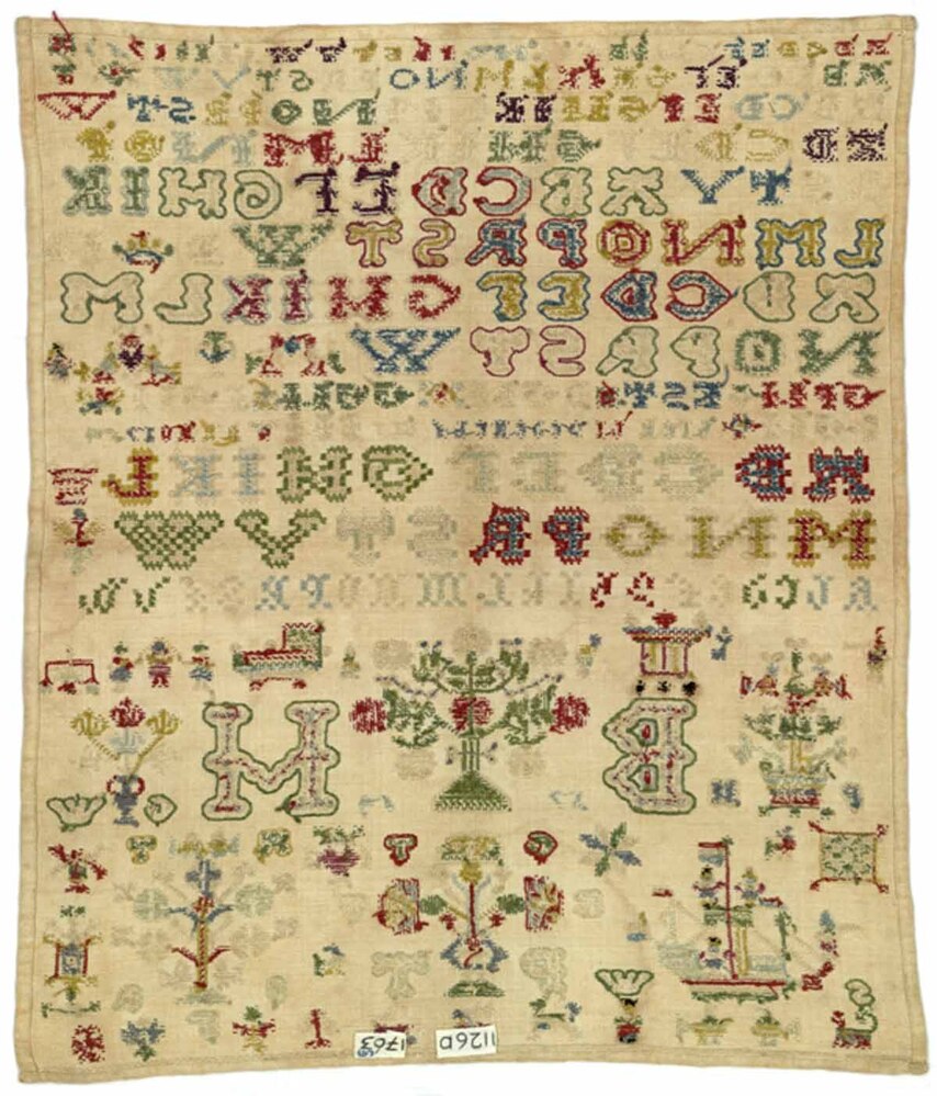Lettermerklap, met elf rijen letters, gemerkt B.H. 1763-1764