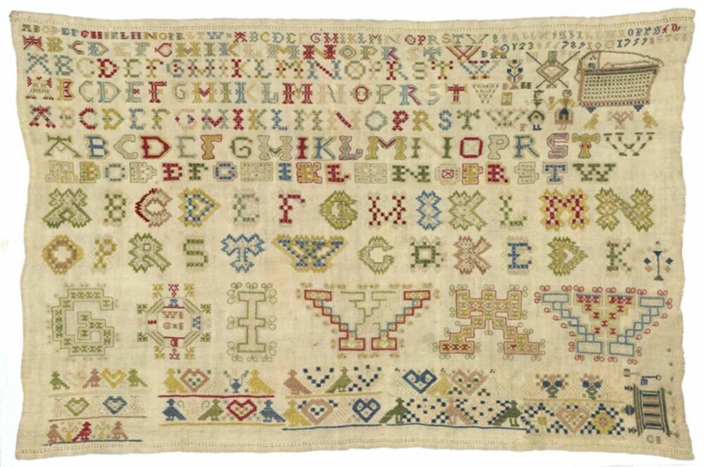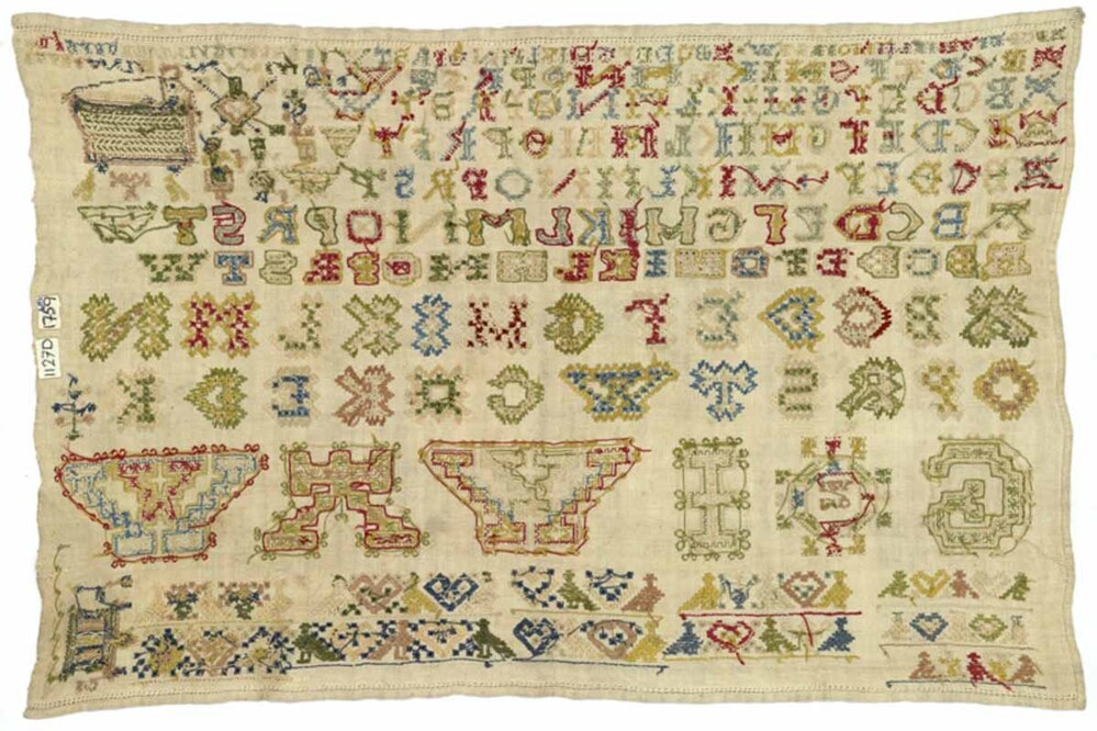 Lettermerklap met hemdsboordranden langs de zoom, gemerkt G.I. 1759