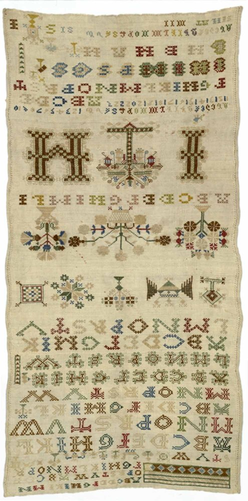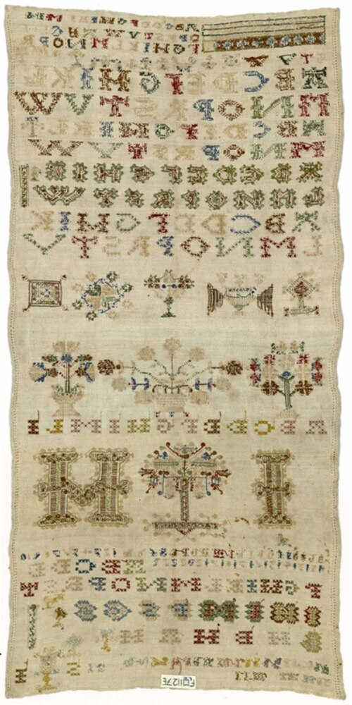 Lettermerklap met achttien regels alfabetten, gemerkt I.H. bij levensboom, ongedateerd