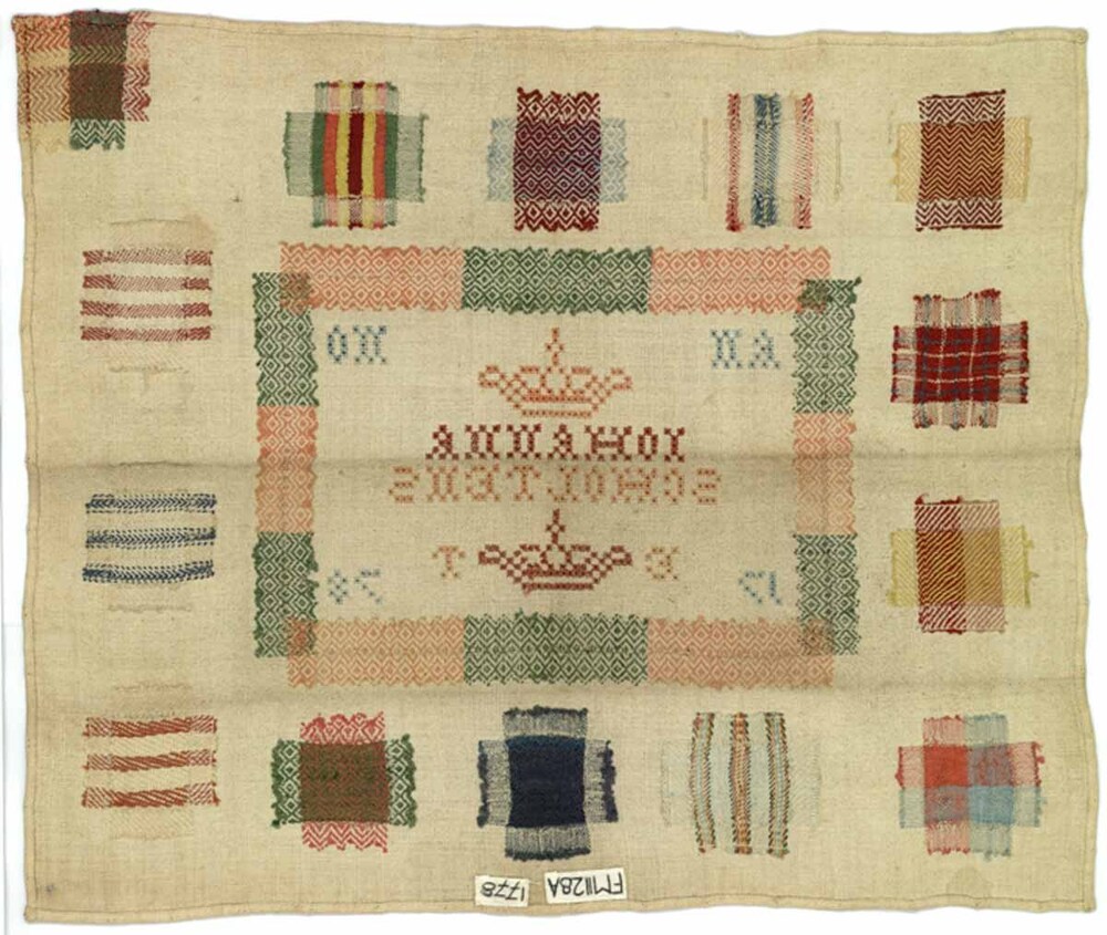 Stoplap met rechthoekig kader, gemerkt Johanna Scholtens anno 1778