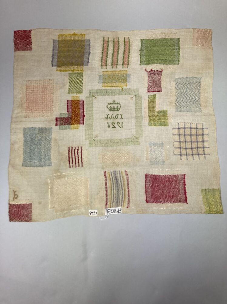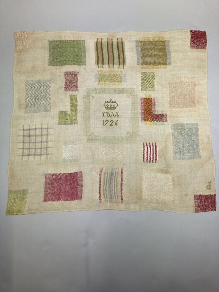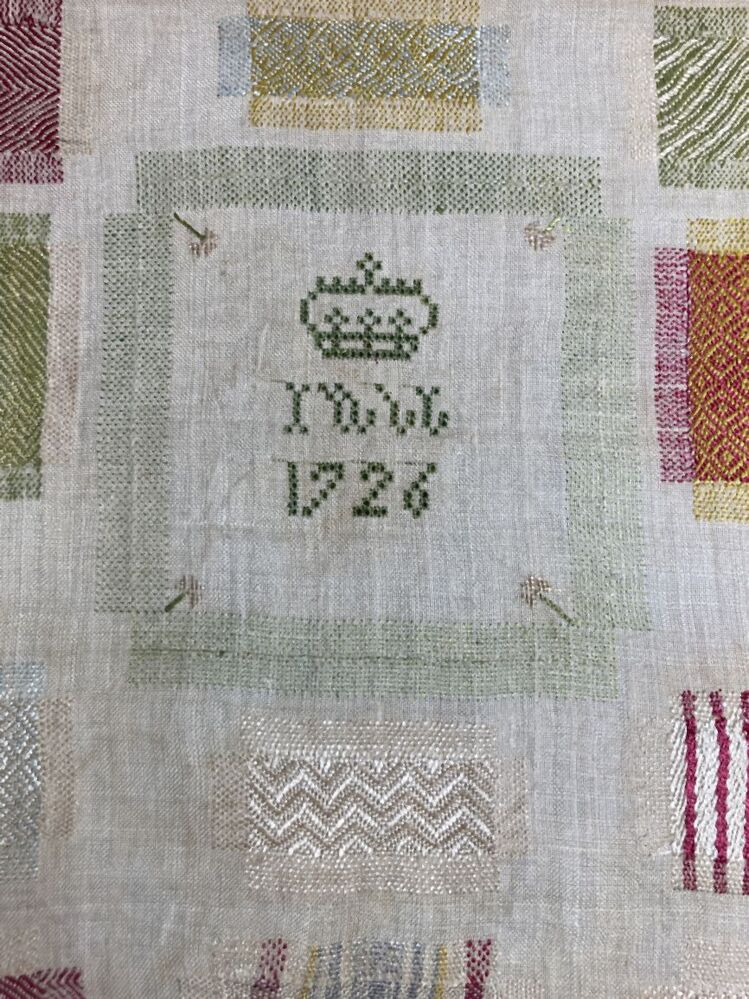 Stoplap van linnen, met tweeëntwintig stoppen, met gekroonde initialen IWvB, gedateerd 1726
