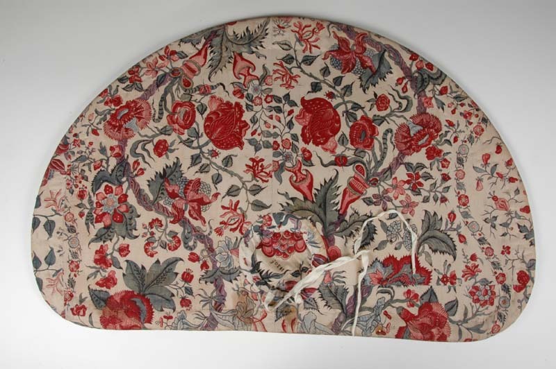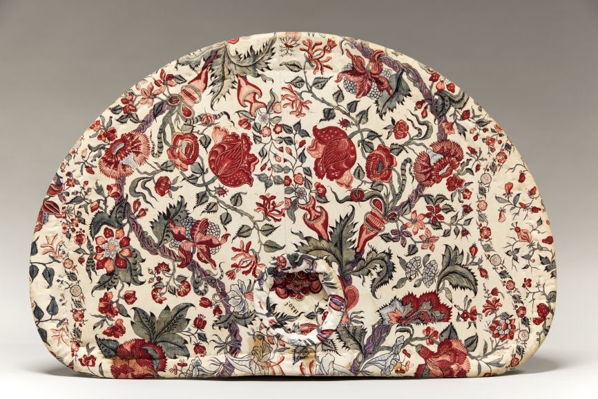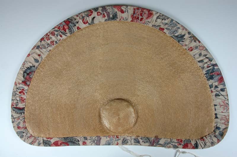 Zonhoed met sitsen voering, beschilderd met knoestige tak met bloemvazen op witte grond