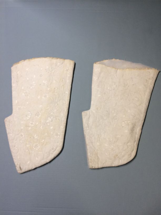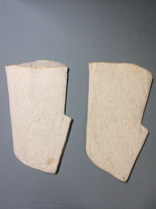 Paar losse mouwen van wit linnen met zwierig wit bloempatroon geborduurd, geïnspireerd op sits
