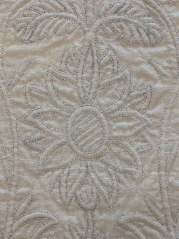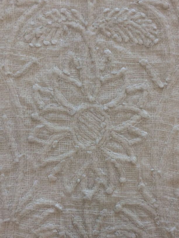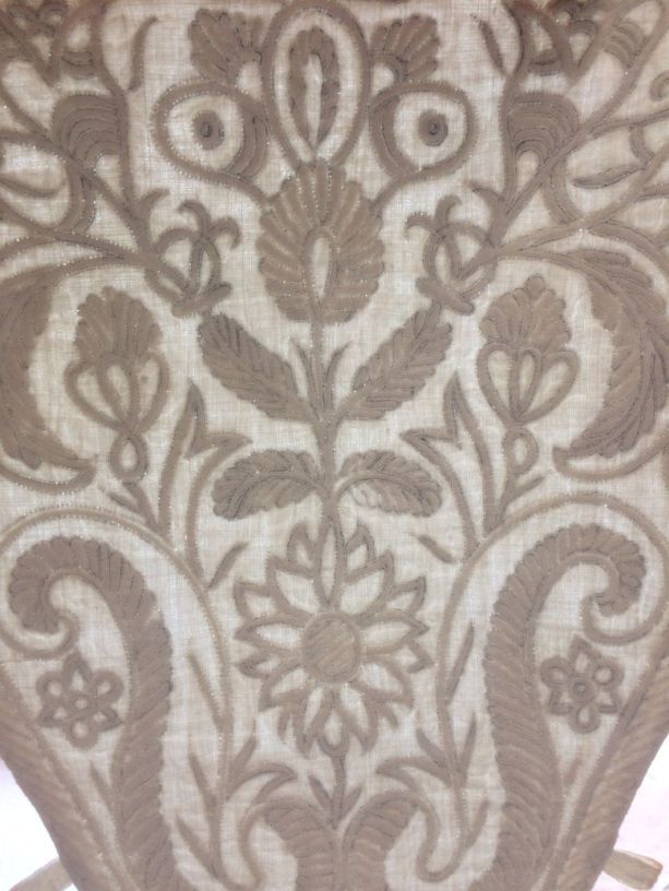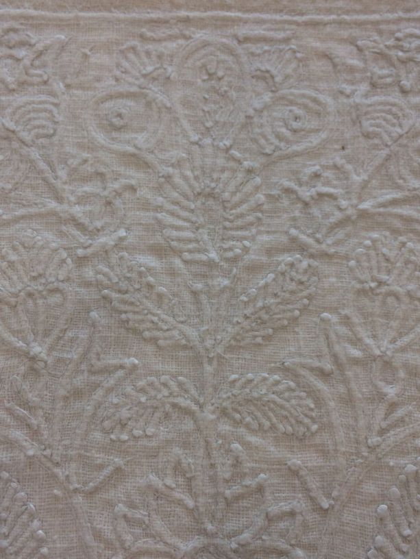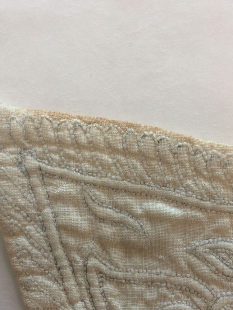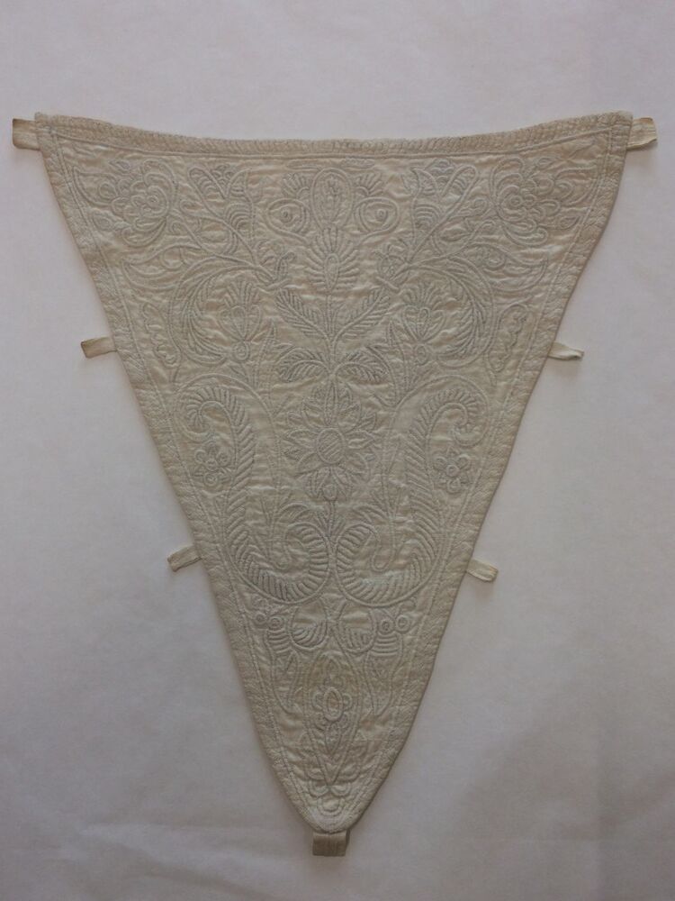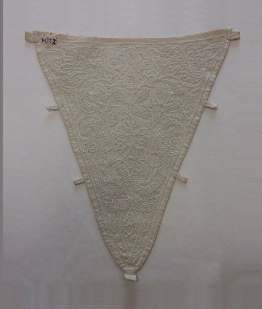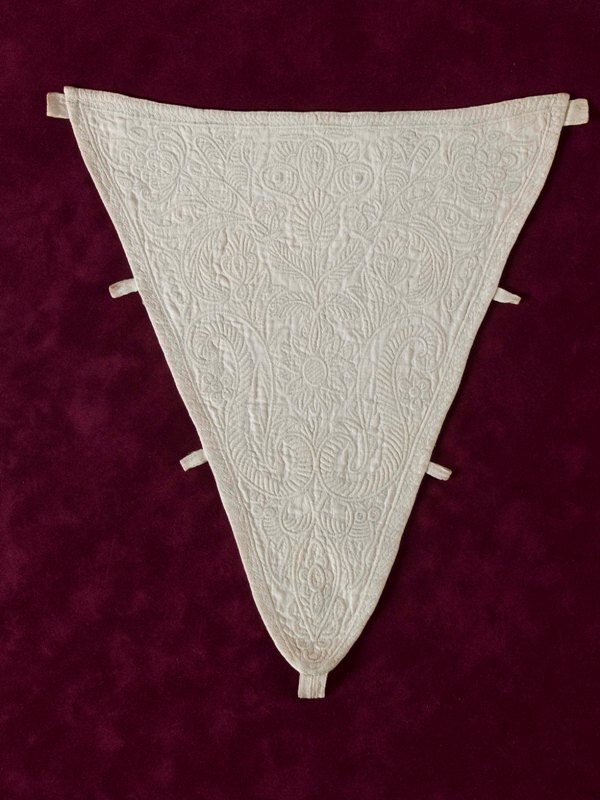 Driehoekige borstlap of stomacher van zaans stikwerk of marseilles in wit linnen