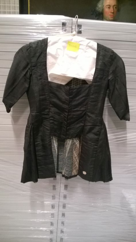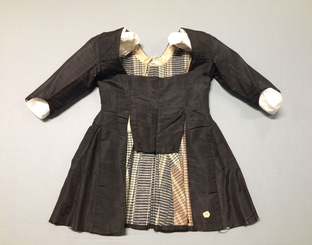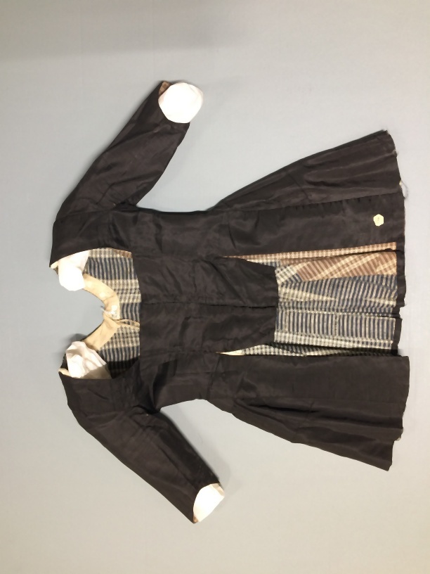 Jak van zwarte zijde-linnen gevoerd met twee soorten geblokt linnen