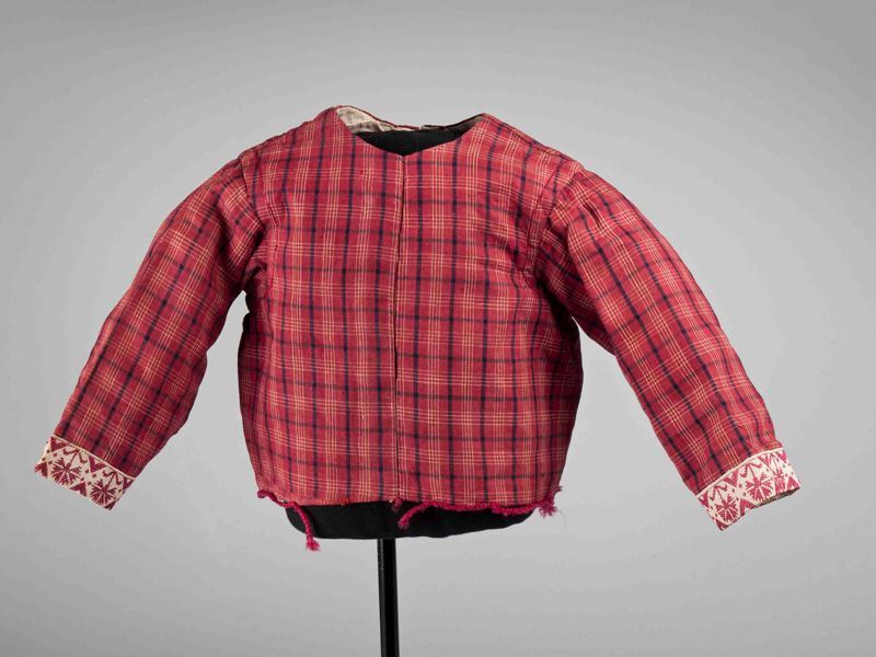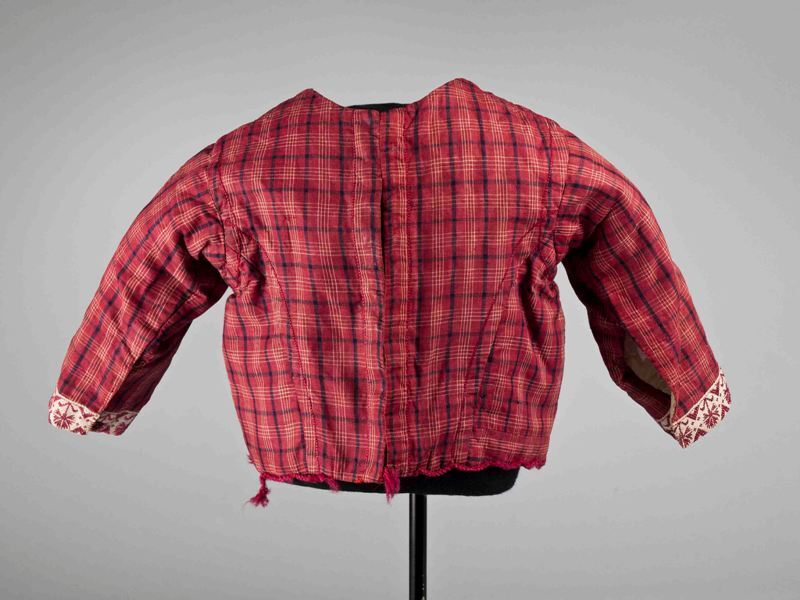 Geruit katoenen jakje of ‘it strûpsel’, gevoerd met wit linnen