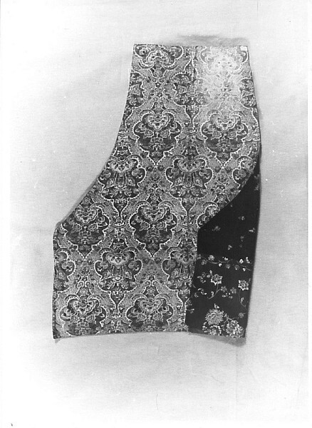 Sitsen wikkelkleed bedrukt met symmetrisch patroon van gestileerde bloemmotieven, gevoerd met twee verschillende stoffen.