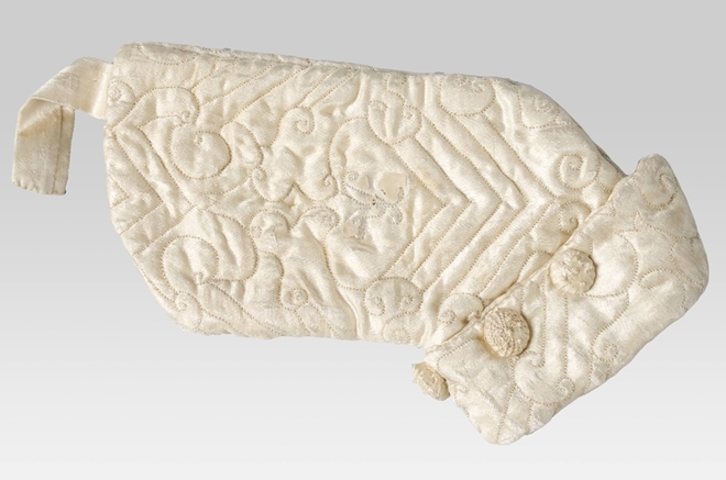 Mouw van crème zijde met matelassé omgeslagen manchet