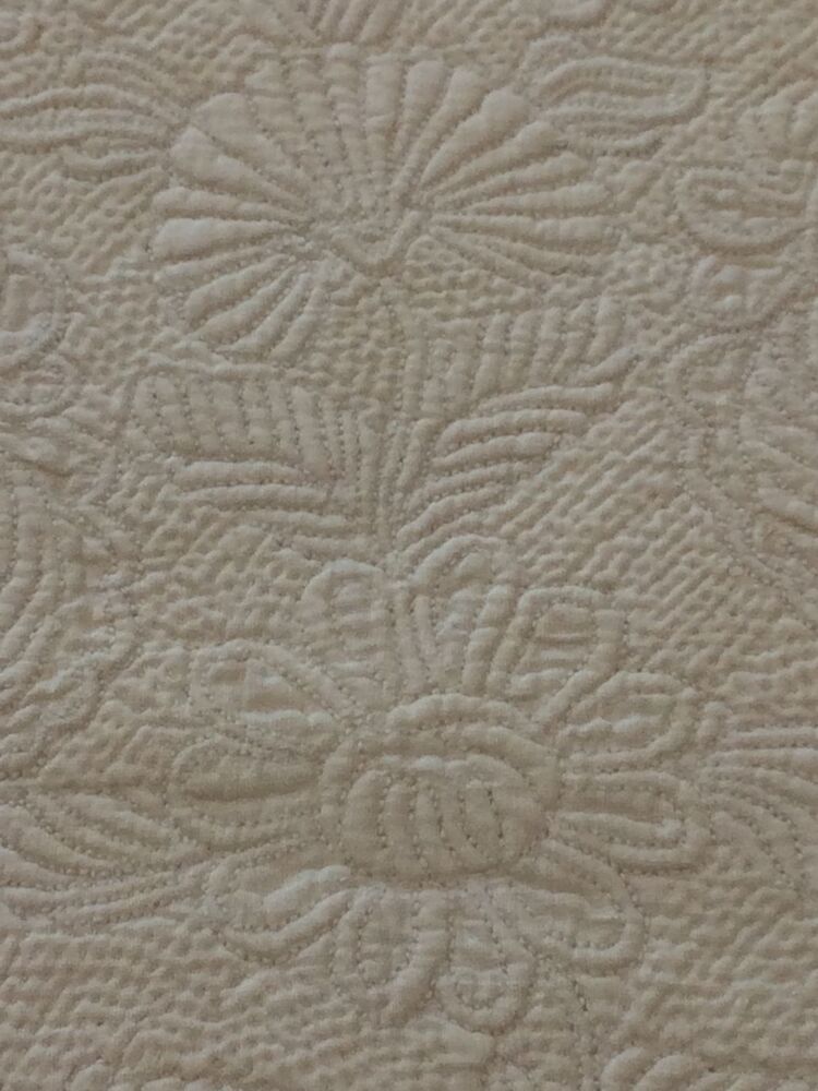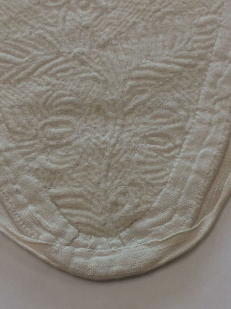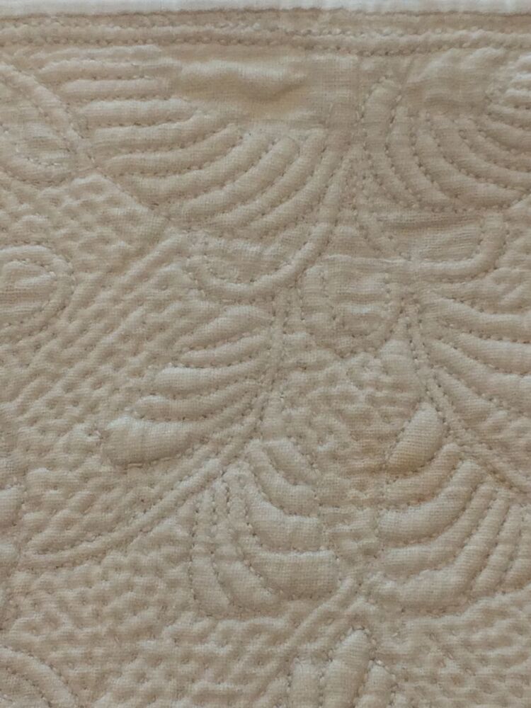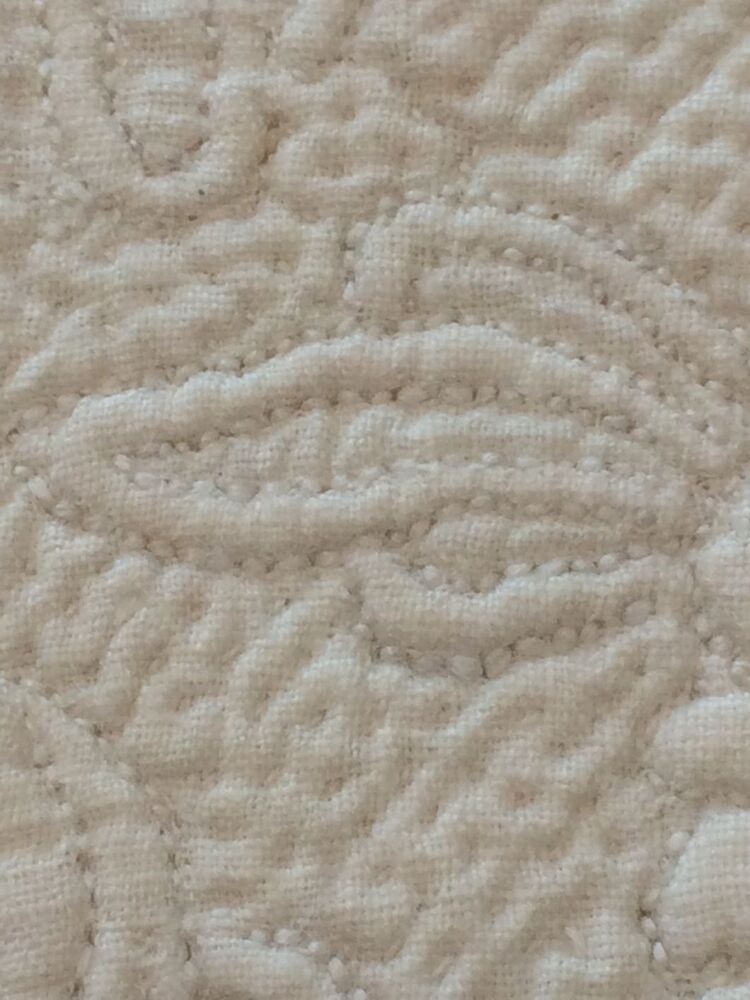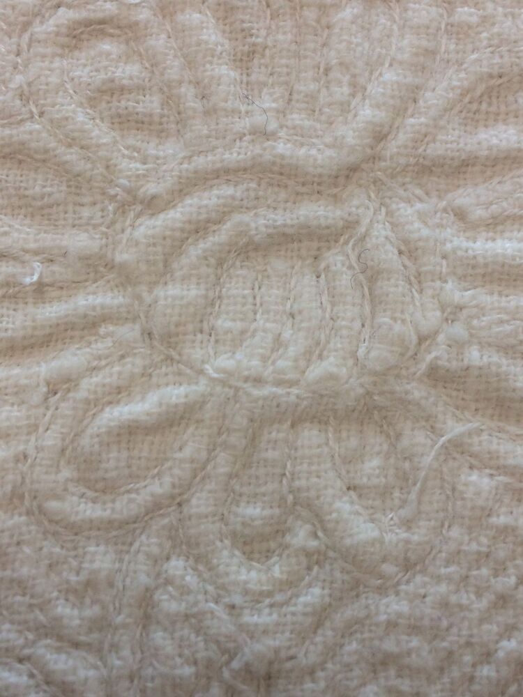 Driehoekige borstlap of stomacher van wit linnen met sierlijk bloemmotief in zaans stikwerk of marseilles