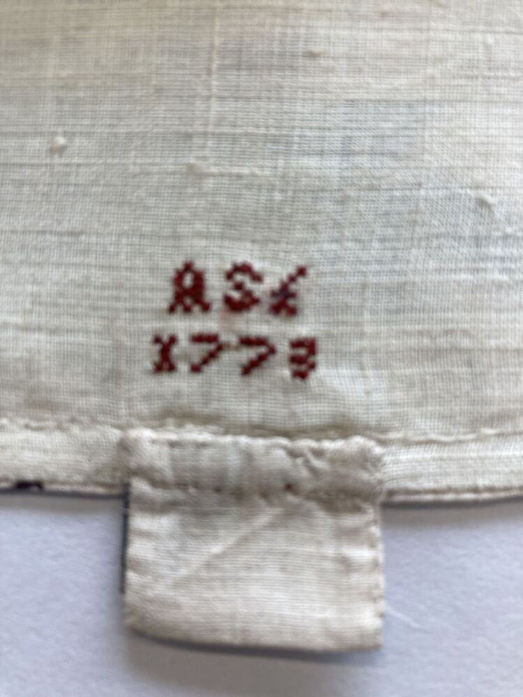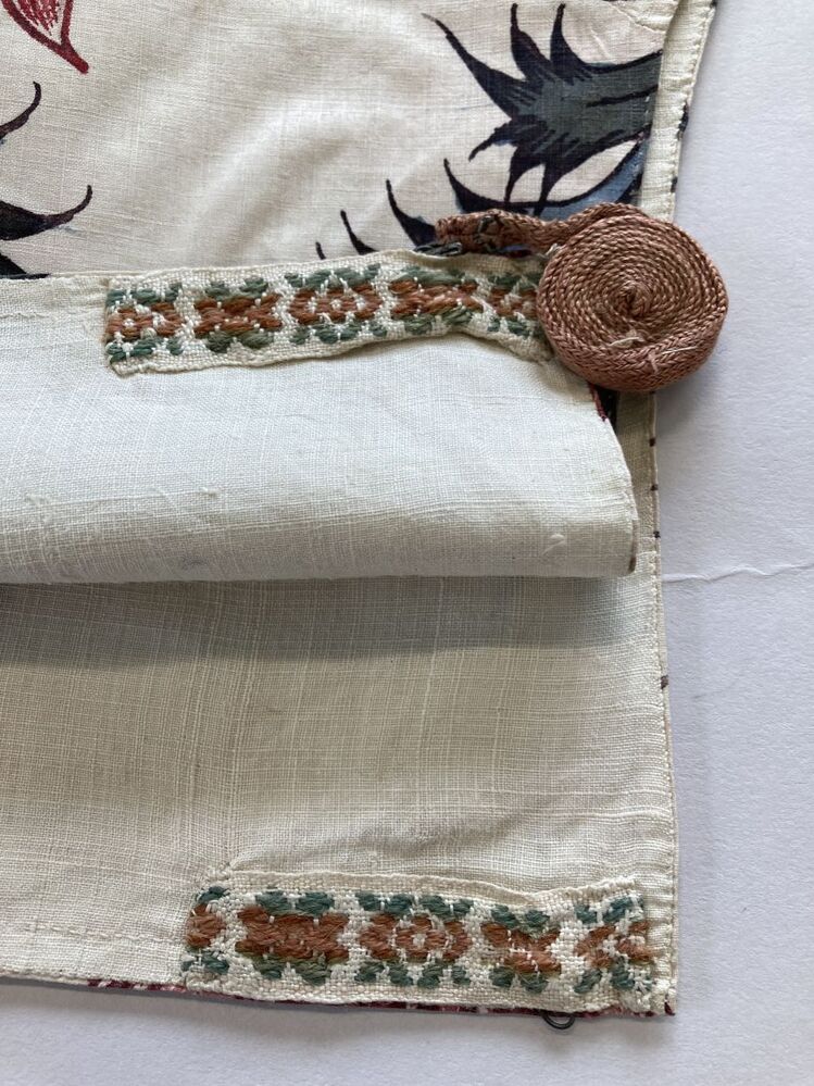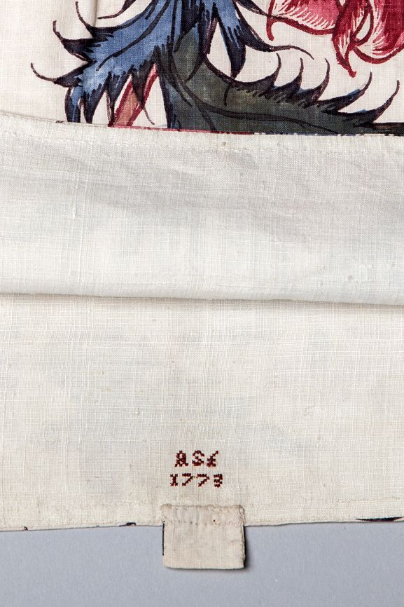 Kroplap of onderst van Indiase sits met groot bloempatroon op witte grond; gemerkt AST 1773