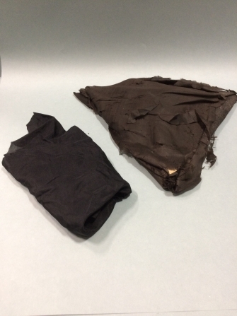 Platte zwarte tricorne van vilt overtrokken met zijde, gedragen door griffier