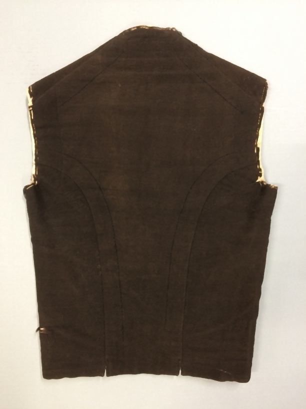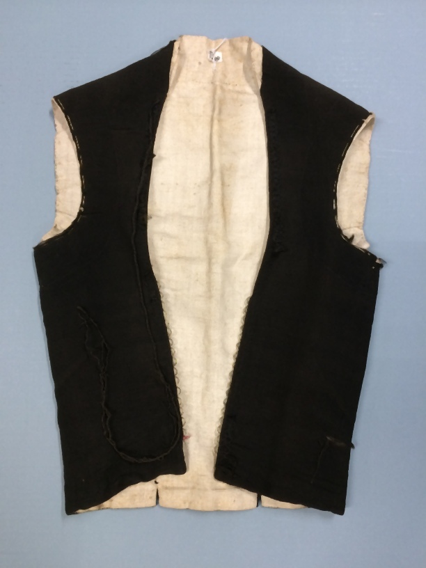 Hindelooper oerlof of rijglijf van zwart wollen stof, zonder mouwen, gevoerd met wit linnen