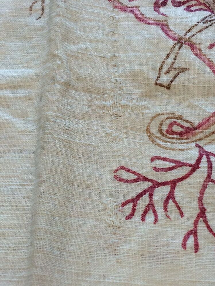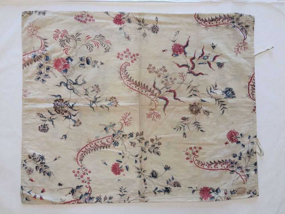 Sitsen sloop met losse bloemstukken op witte grond