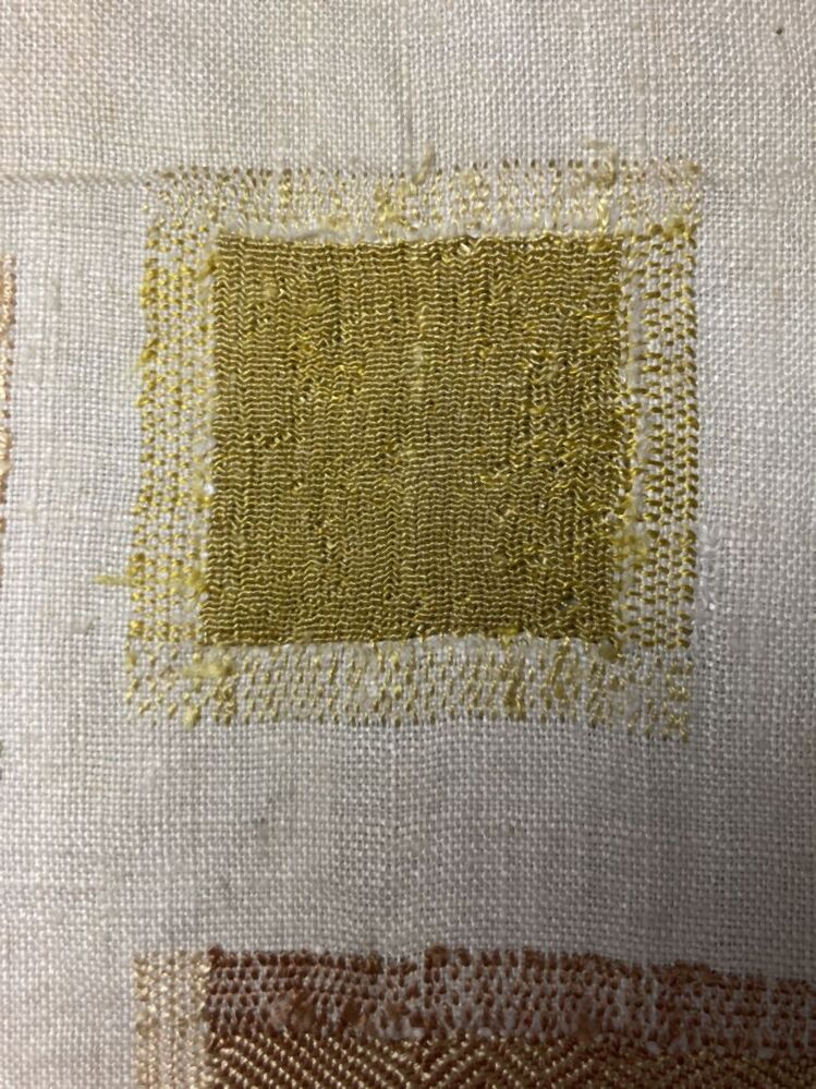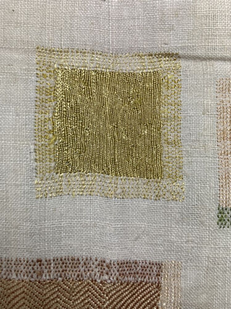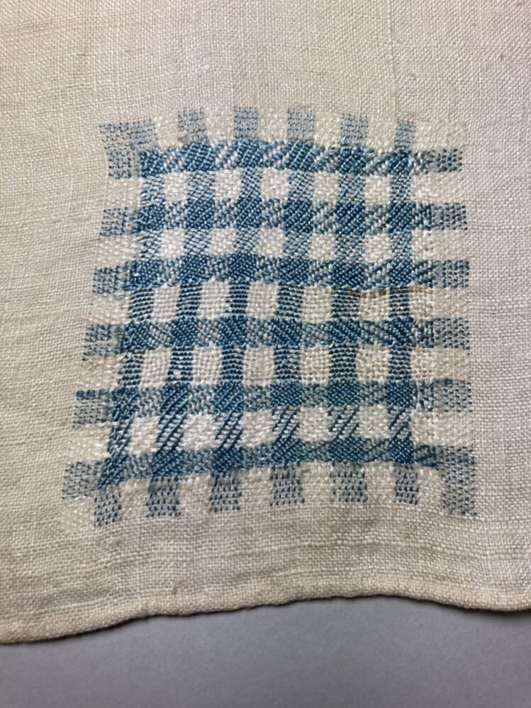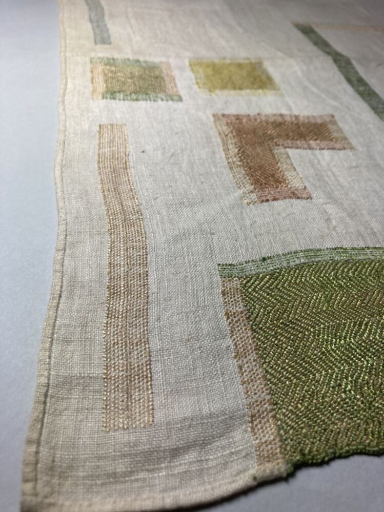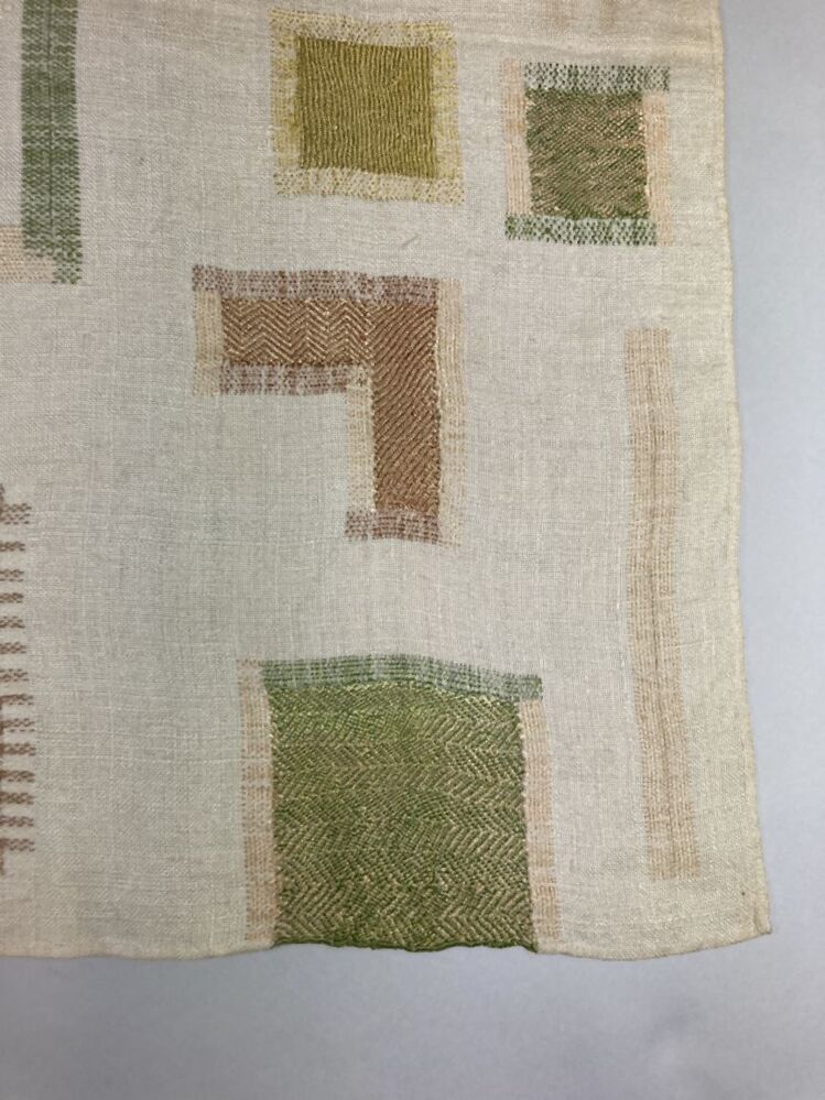 Stoplap van linnen, met zestien stoppen, met rijgsteken in beige, groen en lichtblauwgemerkt HBS, 1712