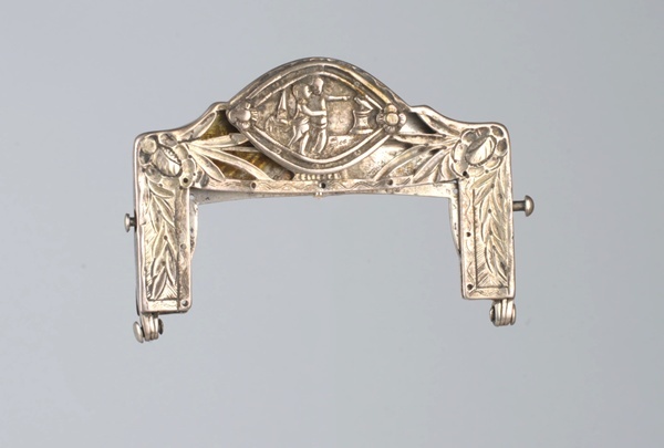 Rechthoekige voor en achterbeugel, waarvan de voorste àjour, en een smalle tussenbeugel