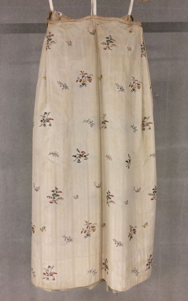 Rok van gestreepte crème zijde met ingeweven gekleurde bloemen