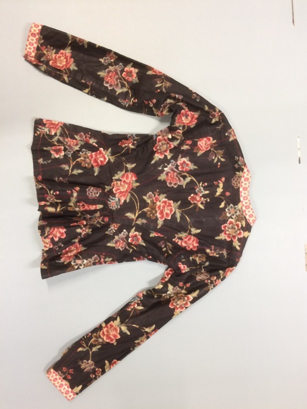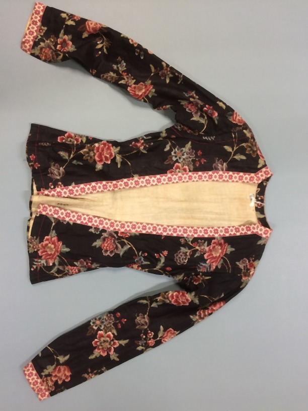 Hindeloper kassakijntje van bedrukt katoen met motieven op zwarte grond en de contour zwart en rood