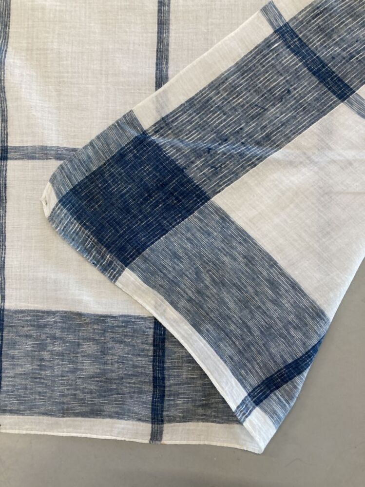 Vierkante katoenen doek met ingeweven ruit met afgebonden strepen in platbinding