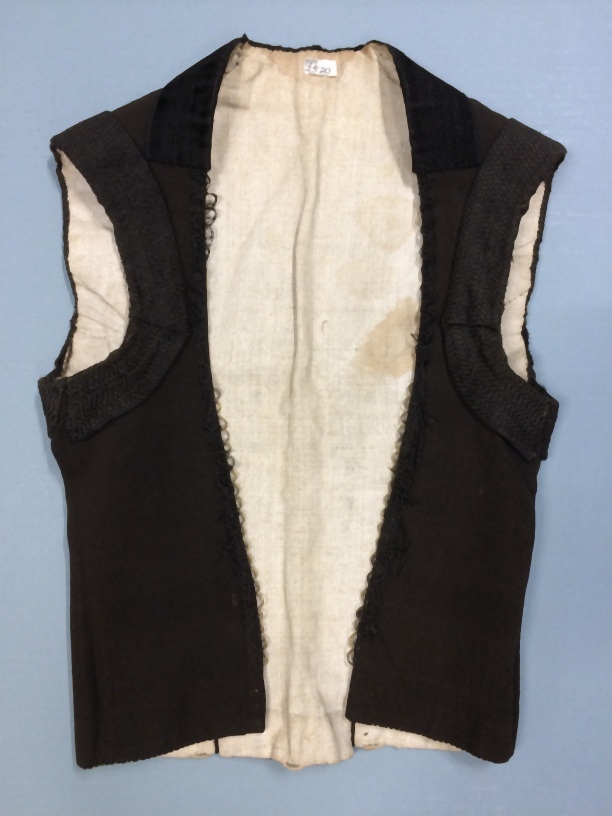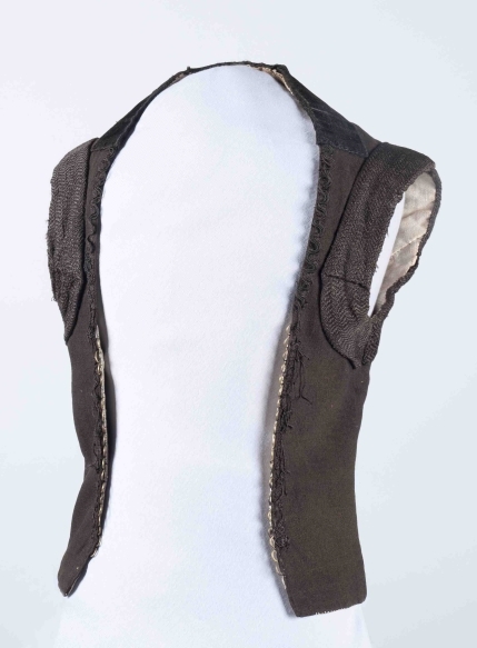 Hindelooper oerlof of rijglijf, zwart bratten (wollen stof), gevoerd met wit linnen