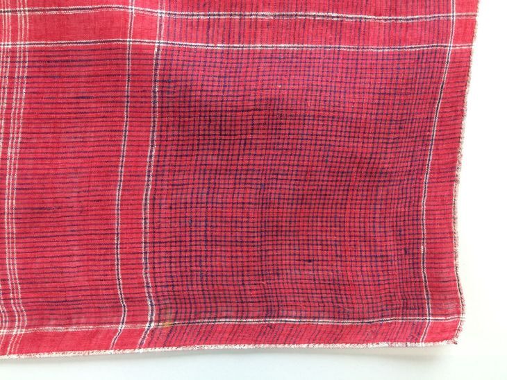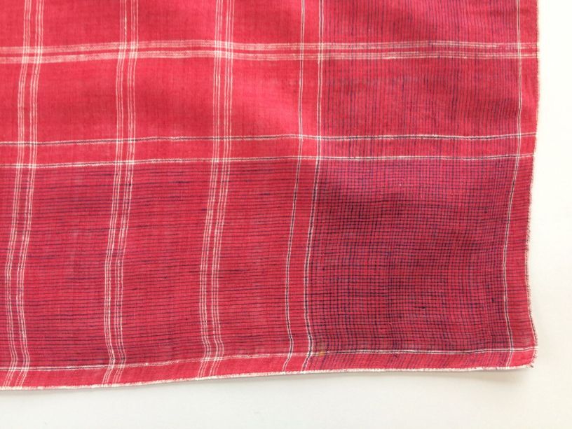 Hindelooper sondook met ingeweven ruit met rode grond en blauwe en witte strepen, met ingeweven rand rondom, lapkede