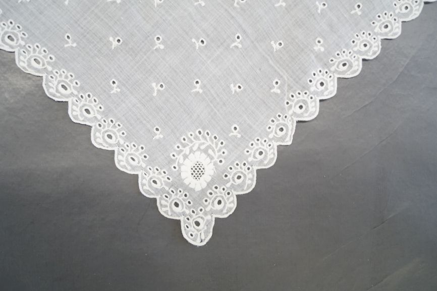 Fichu van katoenen batist versierd met engels borduurwerk en bezaaid met kleine takjes