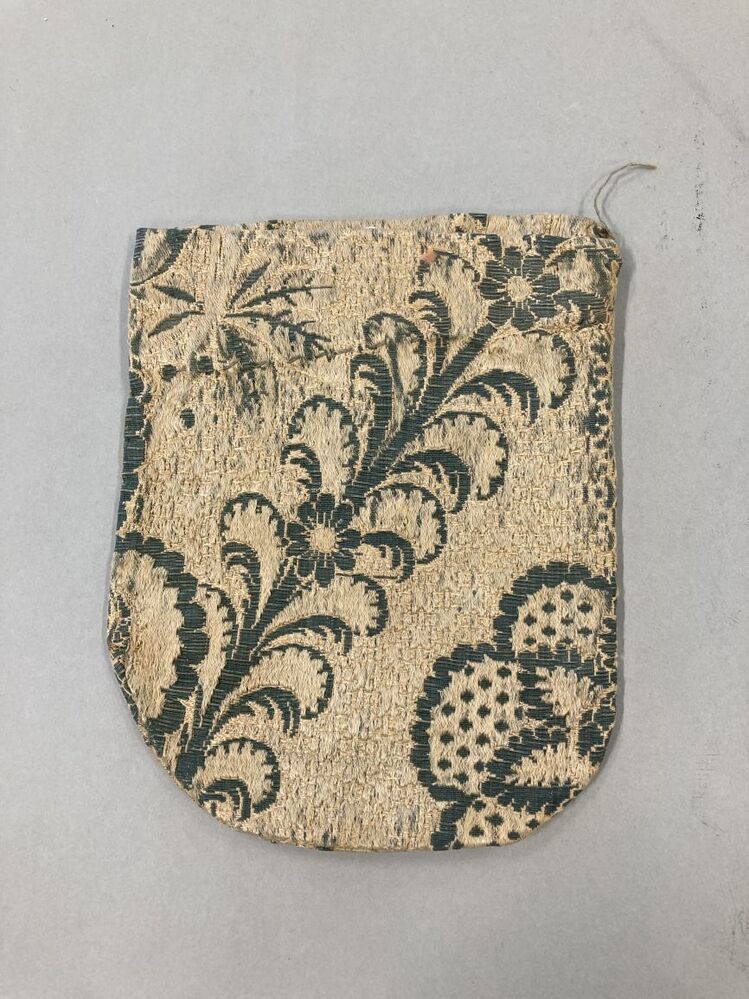 Buideltasje van groen-beige zijde jacquardweefsel met bloemenpatroon