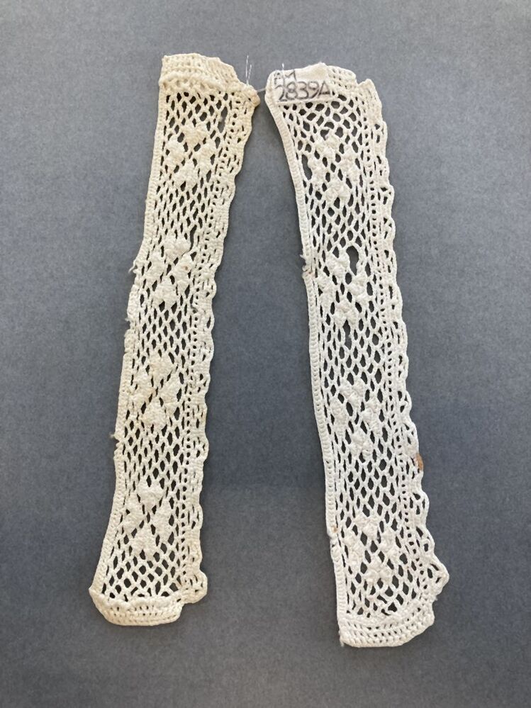 Paar mouwopslagen, gehaakt van grof wit katoen